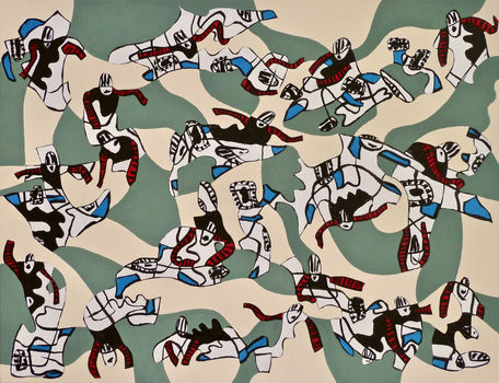 Mes tableaux sont de grands collages peints à la gouache et à l’encre de chine.